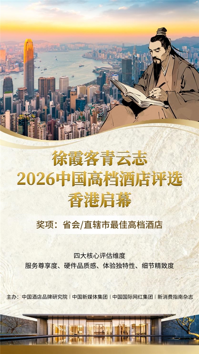 当徐霞客“探索天地”的旅行精神跨越六百年,与当代人“悦享品质、礼遇生活”的核心需求共振,一场重新定义品质住宿服务标准的行业盛会,近日在“亚洲文旅枢纽”香港正式启动。“徐霞客青云志——2026中国高档酒店评选”作为中国文旅卓越大奖核心板块,由中国酒店品牌研究院、中国新媒体集团、中国国际网红集团、新消费指南等四大权威机构联合主办、上海秀维文化传媒全程承办,11月15日至12月15日为评选周期,2026年1月初拟举办颁奖盛典,并创新增设“省级最佳高档酒店”席位,以“专业评审+宾客口碑”双轮驱动,为千万品质出行人群筛选真正“精于质、优于服、适于心”的住宿标杆。